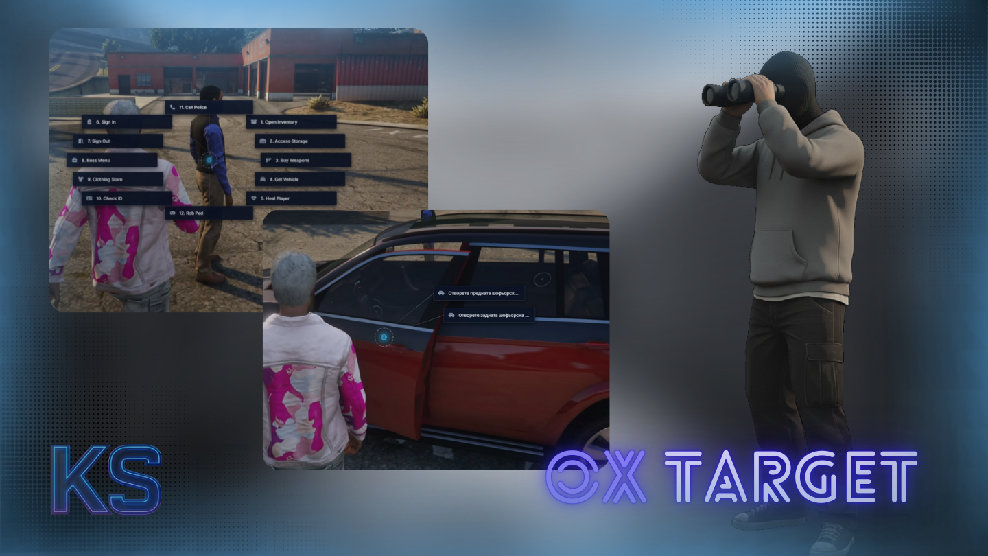 <table><thead><tr><th width="167">Resource</th><th width="167">Description</th><th width="217">Preview</th><th>Tebex</th></tr></thead><tbody><tr><td><strong>KS ClothingMenu</strong></td><td>Sleek clothing system for dressing and undressing players</td><td><img src="https://1472837784-files.gitbook.io/~/files/v0/b/gitbook-x-prod.appspot.com/o/spaces%2Fs8IYuNopc2l0ciFiH0AO%2Fuploads%2Fgit-blob-e1e6cc5204e516dc04e49a4aec07105b8a831629%2F6.png?alt=media" alt=""></td><td><a href="https://ks-development-shop.tebex.io/">Purchase</a></td></tr><tr><td><strong>KS Notify</strong></td><td>Modern 3D notification system</td><td><img src="https://1472837784-files.gitbook.io/~/files/v0/b/gitbook-x-prod.appspot.com/o/spaces%2Fs8IYuNopc2l0ciFiH0AO%2Fuploads%2Fgit-blob-73aa93f657caf38439d83d8b804ce28e32e7769b%2F5.png?alt=media" alt="" data-size="original"></td><td><a href="https://ks-development-shop.tebex.io/">Purchase</a></td></tr><tr><td><strong>KS Chat</strong></td><td>Modern chat interface with emoji support</td><td><img src="https://1472837784-files.gitbook.io/~/files/v0/b/gitbook-x-prod.appspot.com/o/spaces%2Fs8IYuNopc2l0ciFiH0AO%2Fuploads%2Fgit-blob-423b040b914d82378eb1021f6dfc5dcb6a089703%2F4.png?alt=media" alt=""></td><td><a href="https://ks-development-shop.tebex.io/package/7100174">Purchase</a></td></tr><tr><td><strong>KS Minigames</strong></td><td>16 Minigames - Unique and Modern</td><td><img src="https://1472837784-files.gitbook.io/~/files/v0/b/gitbook-x-prod.appspot.com/o/spaces%2Fs8IYuNopc2l0ciFiH0AO%2Fuploads%2Fgit-blob-2309aa398297b35d02d85ce70572d12cc9e9c73e%2F1.png?alt=media" alt=""></td><td><a href="https://ks-development-shop.tebex.io/">Purchase</a></td></tr><tr><td><strong>KS Multicharacter</strong></td><td>The most advanced, modern, and visually polished multicharacter system available for FiveM.</td><td><img src="https://1472837784-files.gitbook.io/~/files/v0/b/gitbook-x-prod.appspot.com/o/spaces%2Fs8IYuNopc2l0ciFiH0AO%2Fuploads%2Fgit-blob-47f1ddfb173563ded5bd37c49106cc756e3c60f5%2F9.png?alt=media" alt=""></td><td><a href="https://ks-development-shop.tebex.io/">Purchase</a></td></tr><tr><td><strong>KS Business Creator</strong></td><td>Modern and fully-featured solution for creating and managing businesses in FiveM.</td><td><img src="https://1472837784-files.gitbook.io/~/files/v0/b/gitbook-x-prod.appspot.com/o/spaces%2Fs8IYuNopc2l0ciFiH0AO%2Fuploads%2Fgit-blob-6d47930a670962b507add6849c503c1a35d0b367%2FCopy%20of%20asa%20(2).png?alt=media" alt=""></td><td><a href="https://ks-development-shop.tebex.io/">Purchase</a></td></tr><tr><td><strong>KS ProgressBar</strong></td><td>Customizable progress bars with 3D effects</td><td><img src="https://1472837784-files.gitbook.io/~/files/v0/b/gitbook-x-prod.appspot.com/o/spaces%2Fs8IYuNopc2l0ciFiH0AO%2Fuploads%2Fgit-blob-63d438dac70f5187e6b9a3a952e1dff5062fa2f5%2F3.png?alt=media" alt=""></td><td><a href="https://ks-development-shop.tebex.io/package/7081600">Get</a></td></tr><tr><td><strong>KS OX Target Redesign</strong></td><td>A complete visual overhaul of the default <strong>ox_target</strong> interface.</td><td><img src="https://1472837784-files.gitbook.io/~/files/v0/b/gitbook-x-prod.appspot.com/o/spaces%2Fs8IYuNopc2l0ciFiH0AO%2Fuploads%2Fgit-blob-213dadbca3e63d91f3e8e466e9345050403916c6%2F2.png?alt=media" alt="" data-size="original"></td><td><a href="https://ks-development-shop.tebex.io/package/7081600">Get</a></td></tr><tr><td><strong>KS Loading</strong></td><td>The next-level loading screen solution for FiveM servers, designed to be fully modern, visually appealing, and feature-rich.</td><td><img src="https://1472837784-files.gitbook.io/~/files/v0/b/gitbook-x-prod.appspot.com/o/spaces%2Fs8IYuNopc2l0ciFiH0AO%2Fuploads%2Fgit-blob-941eceb9dec3f30eefa0402c76357d1071db321c%2F7.png?alt=media" alt=""></td><td><a href="https://ks-development-shop.tebex.io/package/7081600">Get</a></td></tr></tbody></table>